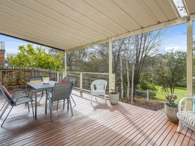Inside, the beautiful winter sun warms the front sitting room (looking out the french doors to a beautiful weeping cherry blossom and silver birch), whilst several other lounge/family spaces ensure ample options for young and old. Three great size bedrooms (master with built-in-robes and tidy ensuite) share access to a central bathroom with bath and an open-plan meals and pitched-ceiling family area, with the kitchen featuring electric oven and cooktop, dishwasher, and plenty of bench space. An undercover deck catching the morning sun, plus a north facing undercover terrace extends your dining and entertaining options, whilst two split ACs also add comfort to the home.