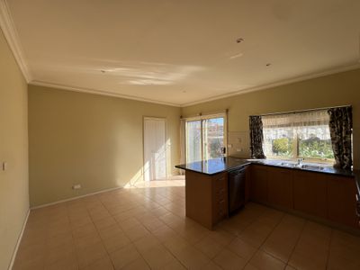 Inside, youll find a generously sized living area filled with natural light, alongside a large, well-equipped kitchen featuring a gas stove, electric oven, and ample cupboard space. A dedicated dining zone offers space for everyday meals or entertaining.