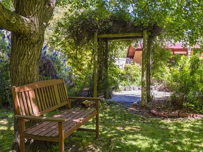 The landscaped gardens are simply breathtaking, bursting with colour and life throughout the seasons. Meandering pathways, floral archways, and shaded sitting areas provide peaceful spots to relax and enjoy the outdoors. With its immaculate gardens, this home is surrounded by lush greenery and seasonal plantings that make every corner feel calm and inviting a perfect place to relax, entertain, or simply enjoy the beauty of nature.