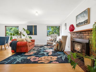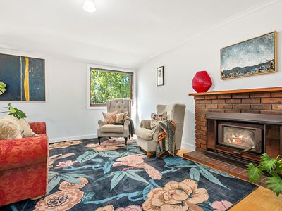 The spacious open plan living area is centred around a cosy wood fire, complemented by split system heating and cooling for year round comfort. The contemporary country styling flows seamlessly outdoors to an expansive deck the perfect place to entertain, unwind and take in the magnificent views across your own property.