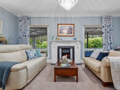As you drive through the entry, the property unfolds before you with a generous circular driveway leading to a graceful and elegant home. A double garage and plenty of space for a caravan or additional vehicles is immediately obvious and provides ample parking.