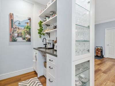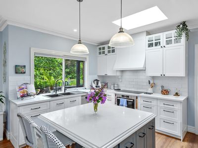 The kitchen stands out with its skylight, island bench, Bosch cooktop and oven, plumbed fridge, dishwasher, a 3 function Zipp HydroTap (hot, chilled and sparkling water), and Butlers pantry.