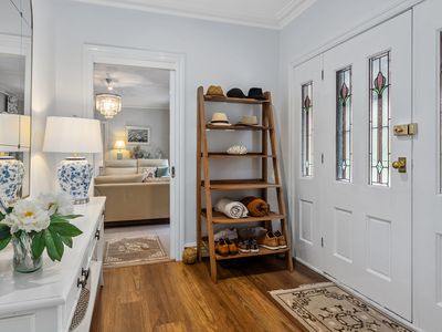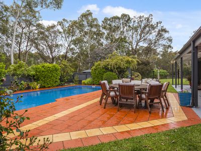 Outdoors the sparkling solar heated in-ground pool with outdoor patio is ideal for those long summer days and entertaining family and friends. The immaculately maintained gardens are filled with native plants, mature trees, colourful flowers, and even a veggie patch, offering a sense of calm and connection to nature.