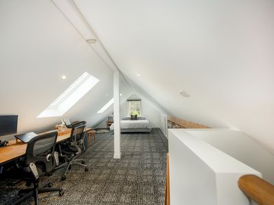 Two ground floor bedrooms enjoy peaceful garden views and are serviced by a stylish bathroom with walk-in shower, feature tiling and VIPP tapware. Upstairs, a generous loft space functions as a third bedroom, retreat or work-from-home studio - perfect for guests, teens or a creative workspace. Draft drawings and previous council approval for a parents retreat (STCA) give buyers a head start should they wish to extend in future.