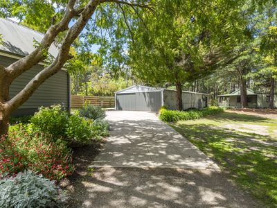 All of this is set in a beautiful garden setting with meandering pathways, lawn areas and established trees offering privacy and peace in your own country retreat. A veggie patch and chicken coop add to the charm and at the rear of the property is a small pine forest.