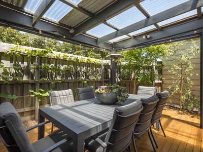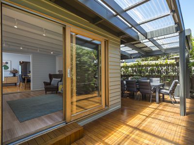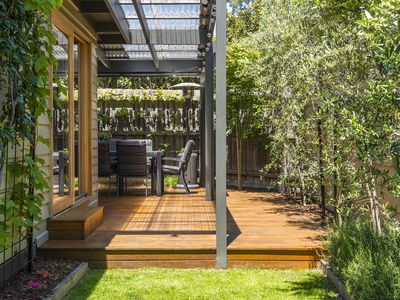 Step outside and youll instantly feel the appeal: a very private, partially enclosed outdoor deck/pergola with patio blinds creates an all-seasons entertaining zone. The garden is a gorgeous bonus too, with espaliered cherry plum and lemon trees, an established muscat grape vine, olive trees, raspberry and strawberries, plus raised vegetable garden beds, a garden shed and a maple for seasonal colour.