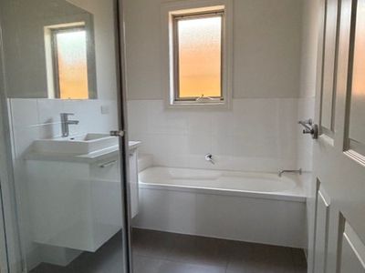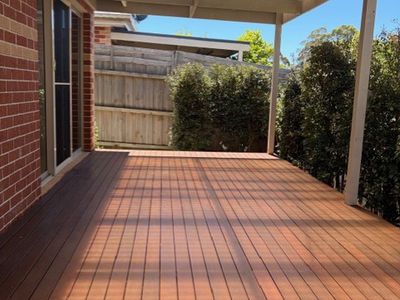 The property comprises three generously sized bedrooms, all carpeted for comfort, and two modern bathrooms. Polished floorboards feature throughout the main living areas, enhancing the light-filled open plan living, kitchen and dining zone, which flows seamlessly out to a private rear deckperfect for entertaining or relaxing.