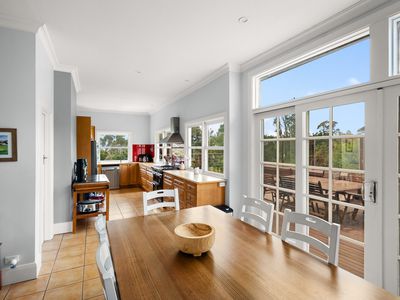 Modern comforts such as ducted heating and cooling, ceiling fans and solar power ensure the home is comfortable and easy to live in year-round. Designed for everyday living and entertaining, the home offers multiple living areas including a separate lounge room and a separate dining room. The main living area opens directly onto a large deck, creating a seamless connection to the outdoors and making the most of the views across the surrounding countryside.
