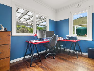 The country kitchen is full of character and features an AGA stove, timber cabinetry and lovely outlooks to the established garden. Accommodation includes four bedrooms plus a separate study, along with a central bathroom featuring a skylight, a generous laundry and a separate toilet.