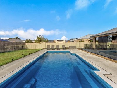Step outside to a private backyard oasis where a stunning 8m x 4m heated and cooled, salt-chlorinated swimming pool takes centre stage. Framed by glass fencing, landscaped gardens, and a generous deck, this space is perfect for relaxed summer days and hosting family and friends.