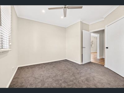 Both bedrooms are carpeted, with floating floorboards throughout the remaining living areas. A spacious and functional kitchen offers ample storage and bench space, ideal for everyday living. Ceiling fans are installed in every room, enhancing comfort across the home.