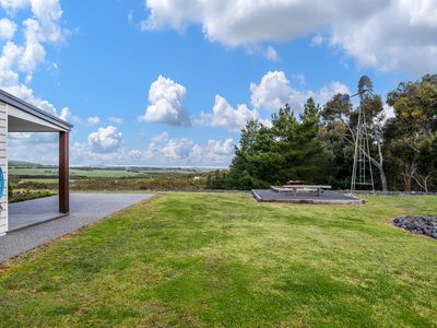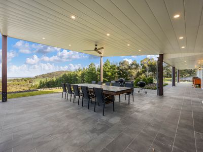 Designed to impress both visually and practically, the residence showcases expansive glazing, vaulted clerestory windows and Spotted Gum flooring, creating light-filled interiors that flow effortlessly to a substantial bluestone alfresco deck the perfect setting for entertaining against a spectacular backdrop.