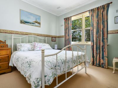 The main residence is warm, light filled and rich in original character. Three generous bedrooms are complemented by an updated central bathroom, while multiple living zones allow the home to function effortlessly for everyday life and entertaining. A formal lounge with open fireplace sits alongside a sunroom that opens directly to the outdoor entertaining area, and a flexible retreat provides additional space for relaxing or working from home.